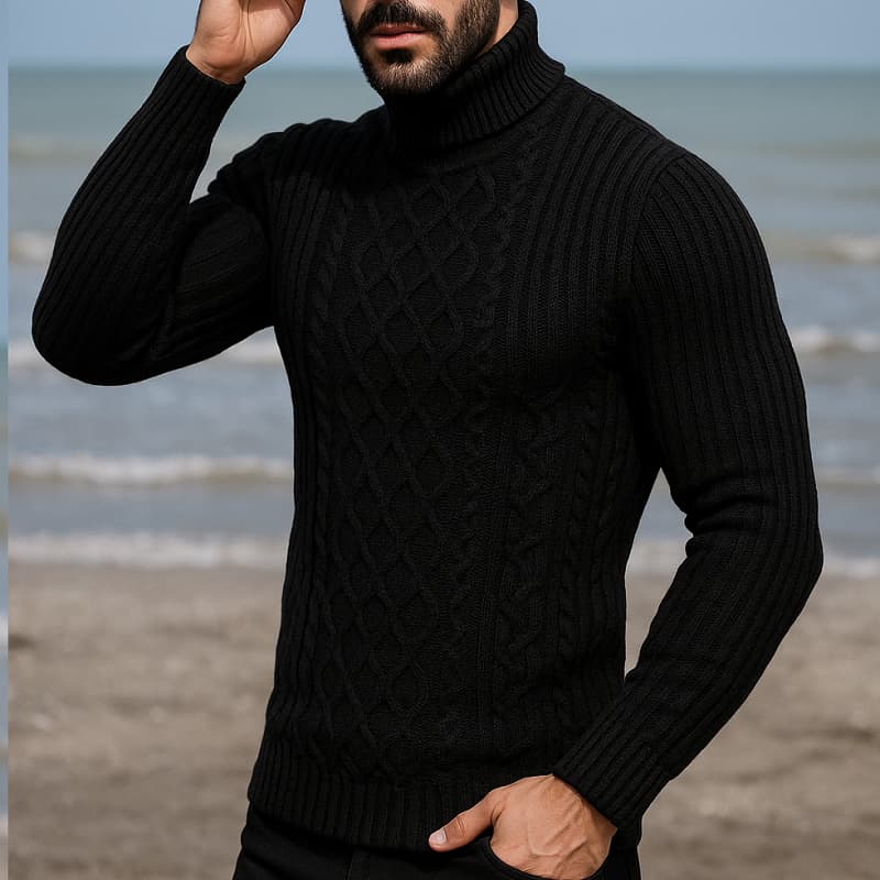 پلیوربافت مردانه مشکی یقه اسکی مدل Hakan